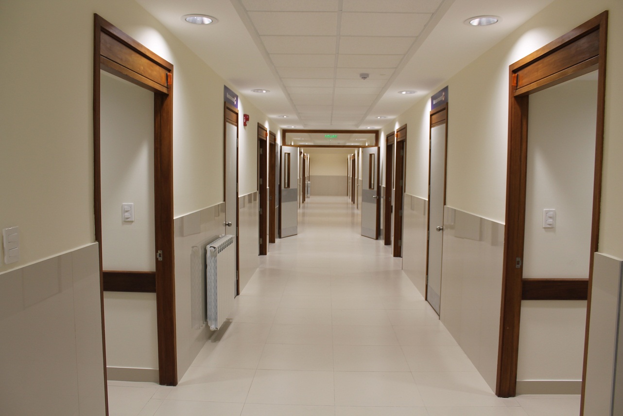 Se trata del segundo nivel de la nueva planta que se une al edificio central con dos áreas diferentes. En una de ellas funcionarán las nueva unidades de cuidados intermedio e intensivo, ocupando 590m2 y en la otra un área de internación con 20 salas, 10 de ellas para internación individual de alto confort, ocupando 808m2.